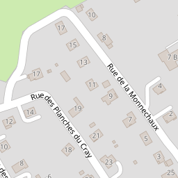 | 16 | 25510 | RUE DE BELLEVUE | PIERREFONTAINE LES VARANS | 967747 | 6685720.9 | 6.539 | 47.21 | ||