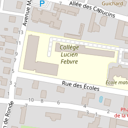 | Nom | Adresse | Code postal | Ville | Téléphone | Longitude | Latitude |