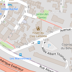 | Nom | Adresse | Code postal | Ville | Téléphone | Longitude | Latitude |